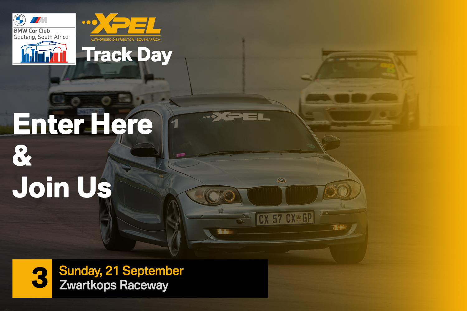 I hereby indemnify, BMW Car Club Gauteng, the promoters, organisers, guarantors and sponsors of the Track Day and the owner/s of any property on which this event is held, and any government, provincial or municipal body and their respective officials, agents, servants and representatives against any legal liability for any damage or injury so done or sustained as aforesaid by myself of any such persons as aforesaid. I further declare that I am aware of the risks, dangers and perils attendant upon motor sport or any other form of timed events, which I hereby assume. I further declare that I am aware that the BMW Car Club Gauteng Media Team will be at the event and may capture photos and video of me and/or my vehicle. I ackowledge that these images may be posted on this website and various social media pages and I have no objection to these images and recordings being made and/or posted.